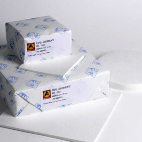 Papel de elevada absorción fabricado especialmente para su utilización en los laboratorios de control de calidad de la industria papelera. Utilizado basicamente en la fabricación de pasta de celulosa para el ensayo de la formación de hojas según los parámetros descritos por la norma ISO 5269/1. Asimismo, también se utiliza en la fabricación de papeles encolados para realizar el ensayo de Cobb según las indicaciones de la norma UNE 57-027 y ISO/R 535.