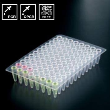 Placa estándar PCR de 96 pocillos 350µl (apta para QPCR), caja de 10x10 placas