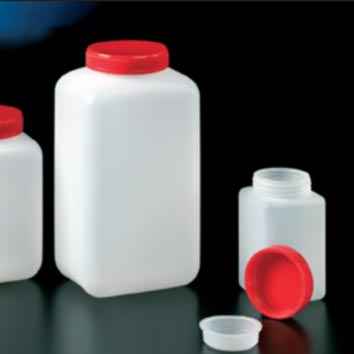 Botellas con tapón a rosca y obturador fabricados en polietileno.
