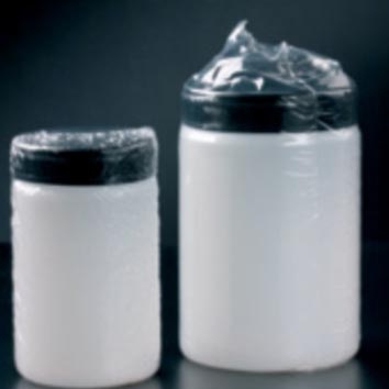 Tarros cilíndricos fabricados en polietileno de alta densidad, con tapa estriada a rosca y obturador.