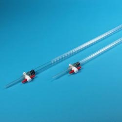 Cuerpo transparente de PMMA (polimetilmetacrilato) y llave de PTFE autolubricada.