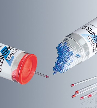El extremo con código de color es pulido con fuego para reducir el desgaste de la centrífuga