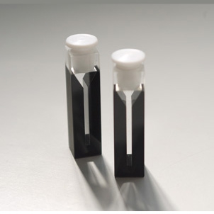 Cubeta vidrio óptico semi-micro, caras negras, 10mm. paso de luz, volumen 1,00ml. con tapón PTFE.