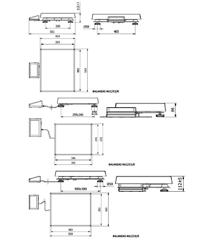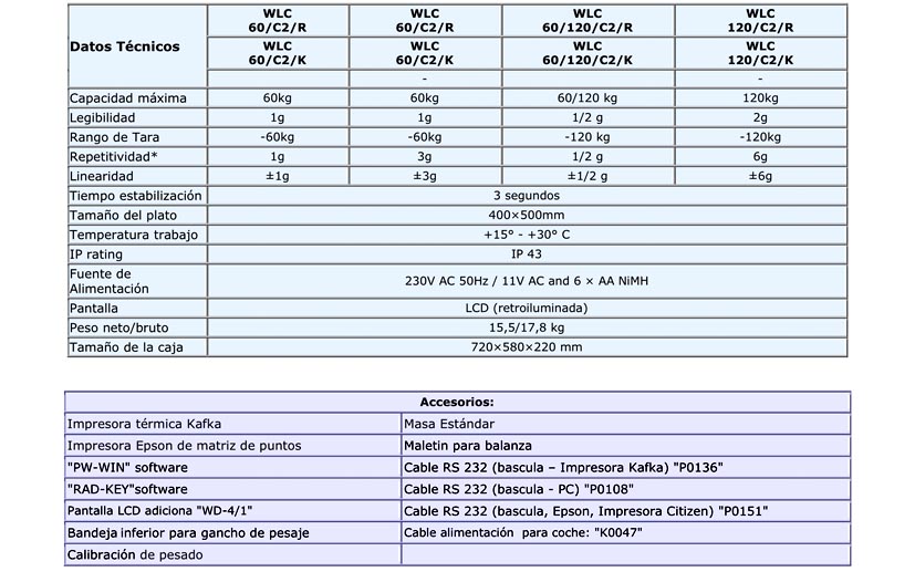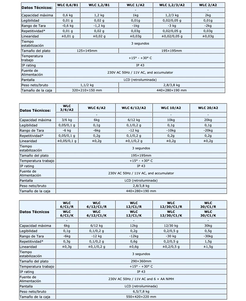 La serie WLC, independientemente del modelo (tamaño del plato: 125×145, 128×128, 195×195, 290×360 y 400×500 mm) y capacidad, está equipada con plataforma de pesaje de acero inoxidable y pantalla LCD retroiluminada, que provee a la balanza de una Buena lectura del resultado del pesaje.