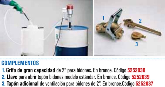 Completamente metálica con motor eléctrico autoventilado equipado con tubo de succión en acero de 1 m de longitud y 38 mm de Ø.