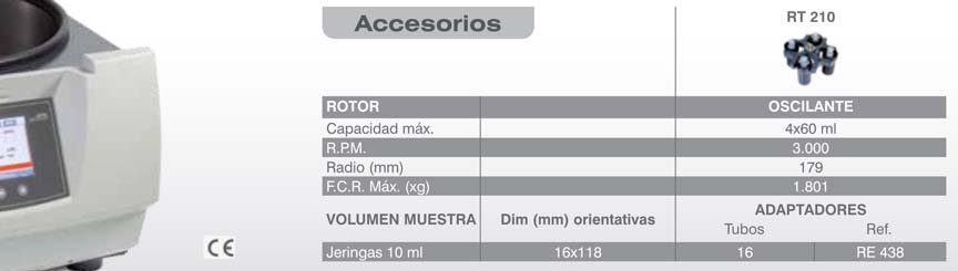 Rotores, adaptadores y tubos, accesorios no incluidos con el equipo. Se tienen que pedir aparte.