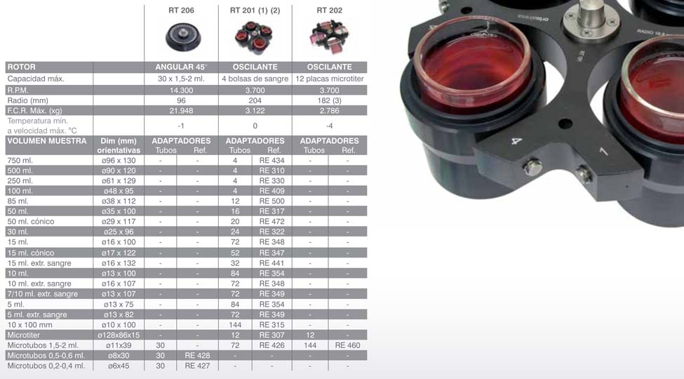 - Alta velocidad, hasta 20.804 xg./14.300 R.P.M.