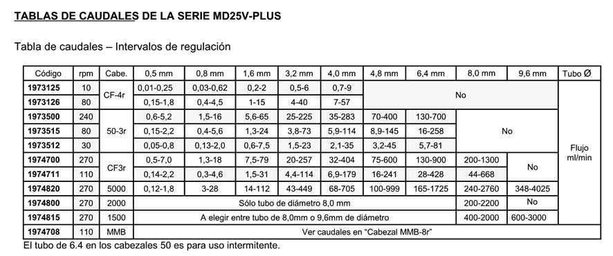 - 8,0 mm. : 200,0 a 2.200,0 ml./minuto.